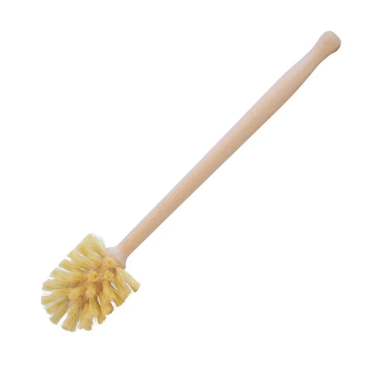 Oppvask kost rund tre med naturfiber og langt skaft.