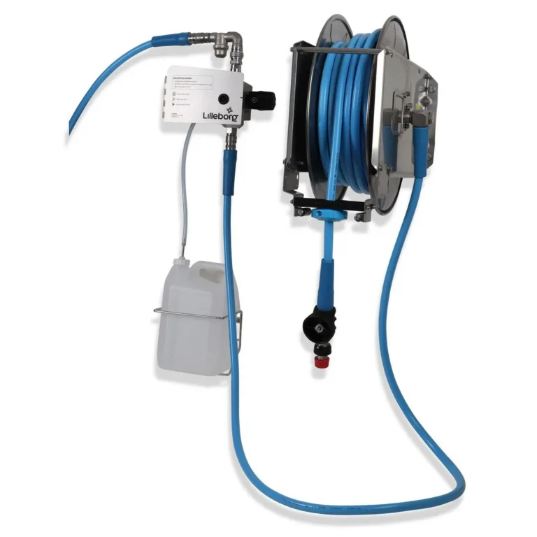 S1 Kombivask vegg komplett med slangetrommel er en enhet som tilkobles nettvann og brukes til rengjøring innen storkjøkken og sanitæranlegg.