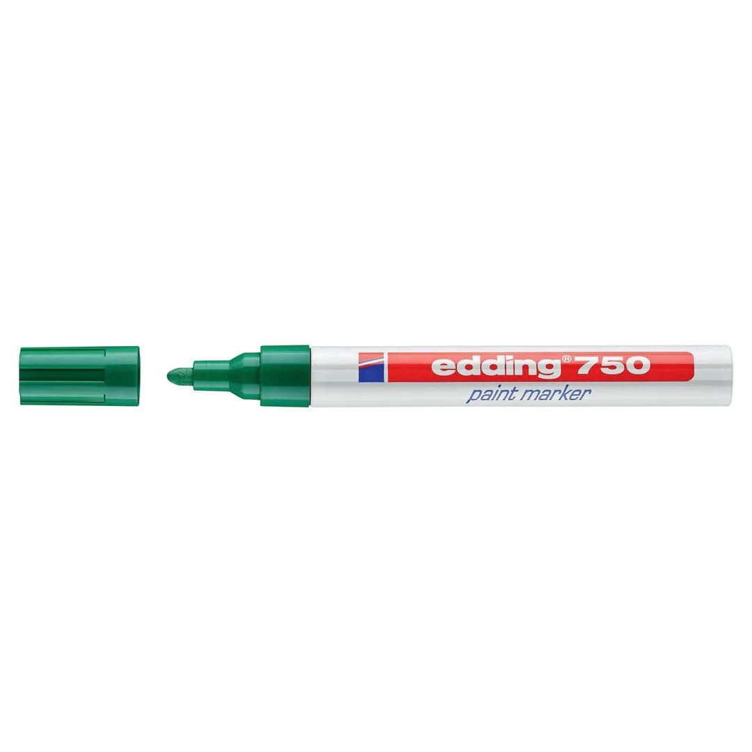 Edding 750-tegnetusj har en tett lakkferniss og skriver jevnt på flere forskjellige overflater. Denne tegnetusjen bruker permanent pigmentblekk som er vann- og slitasjebestandig, noe som gjør den ideell til oppgaver som krever et blekk som kan vaskes ut. Videre er den varmebestandig opp til 400 °C. Edding 750-tegnetusj har en kulespiss med en strekbredde på 2–4 mm og kan brukes til hverdagsjobber hjemme. Den skriver med en svært tett lakk og har enestående vedheft, særlig på glatte, porøse og mørke overflater. Merkepennen kan skrive på et stort antall forskjellige overflater inklusive plast, metall, glass og treverk.