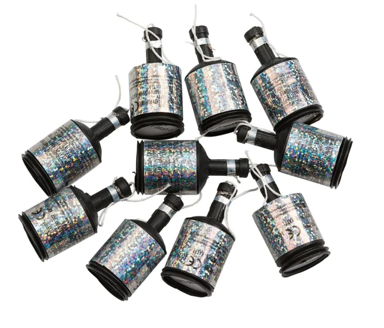 Sølvfargede festpoppers som sprer glans og glede – en enkel måte å skape feststemning på kort tid. Pakken inneholder 8 stk.