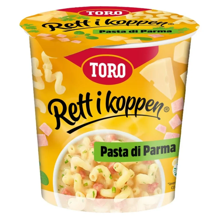 TORO Rett i koppen Pasta Di Parma gir deg en varmende pause, raskt og enkelt. TORO Pasta Di Parma er en pastarett med mild og god smak. Passer perfekt når man trenger et pausemåltid, enten det er hjemme, på arbeidsplassen eller på tur. Enkel tilberedning: Åpne lokket halvveis og fyll opp med kokende vann til merket linje.