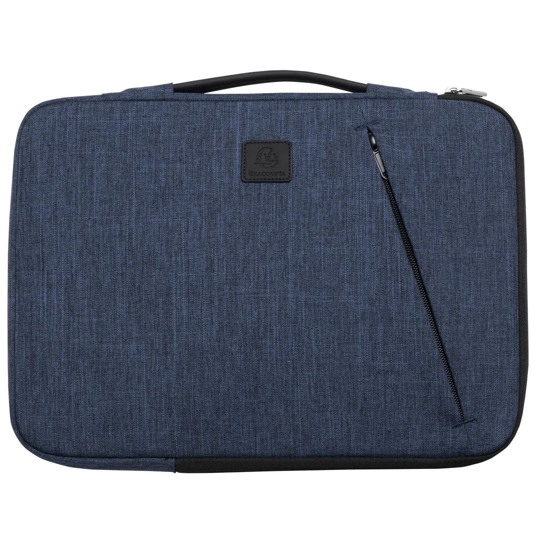 Beskytt din bærbare PC med EXACOMPTA 13-14” PC-omslag i blått. En elegant og funksjonell løsning for trygg oppbevaring. Den L-formede åpningen sørger for enkel tilgang og hindrer at laptopen sklir ut. En praktisk frontlomme med glidelås gir plass til tilbehør , mens det solide håndtaket gir et komfortabelt grep.