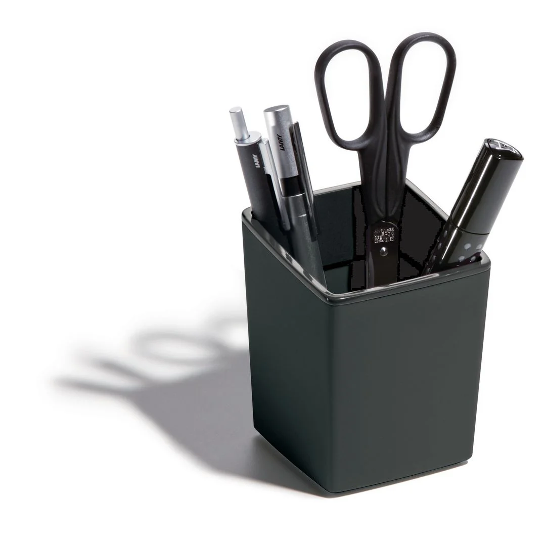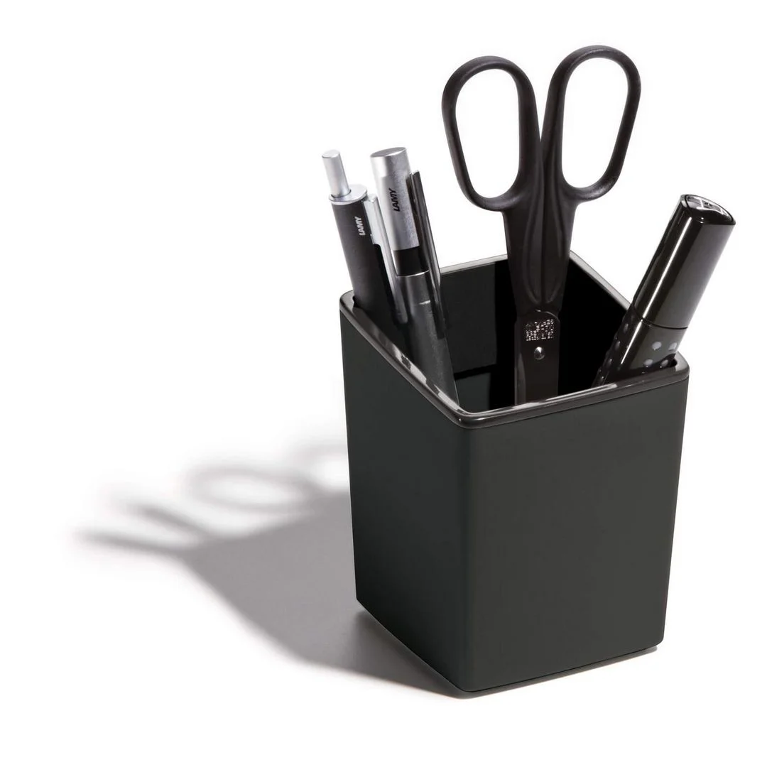 - Med myke plastføtter for stabilitet og beskyttelse av underlaget, tilbyr denne pennekoppen en praktisk og organisert oppbevaringsløsning. Den unike utformingen med en lavere front gjør det enkelt å ta ut pennene når du trenger dem. Mål: 8 x 10 x 8 cm (BxHxD).