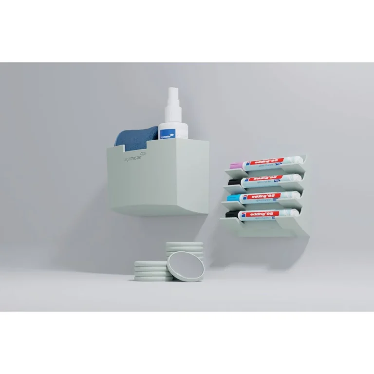 Magnetisk penneholder for glassboard – alltid ha markørene innen rekkevidde Denne magnetiske penneholderen er perfekt for å oppbevare markører på glassboard. Den er enkel å feste og flytte, slik at du kan organisere kontorplassen din på en praktisk måte.