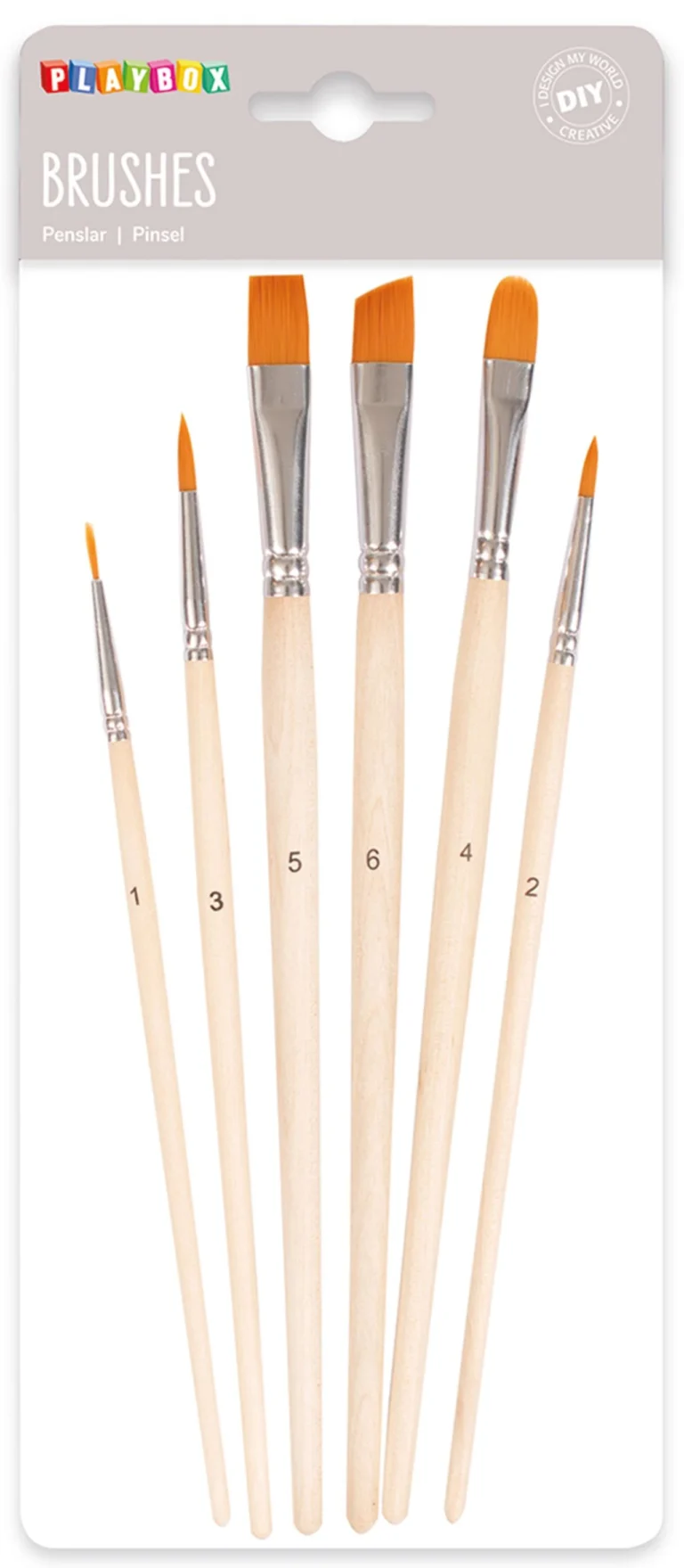Penselsett med seks ulike størrelser. Perfekt for å variere maleriene dine.Fungerer både med tynne og tyktflytende farger.