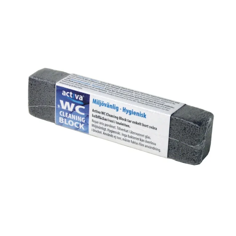 Blokken fjerner tunge kalkavleiringer, mugg og rust i toalettseter og i vasker hvor kjemikalier ikke hjelper.
