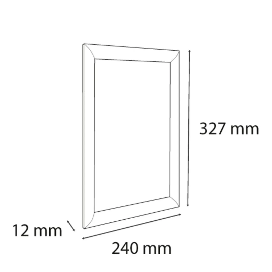 Exacompta aluminiums veggramme A4 for enkel plakatskifte. Denne A4 veggrammen åpnes forfra ved å løfte de brede skrå aluminiumskantene.