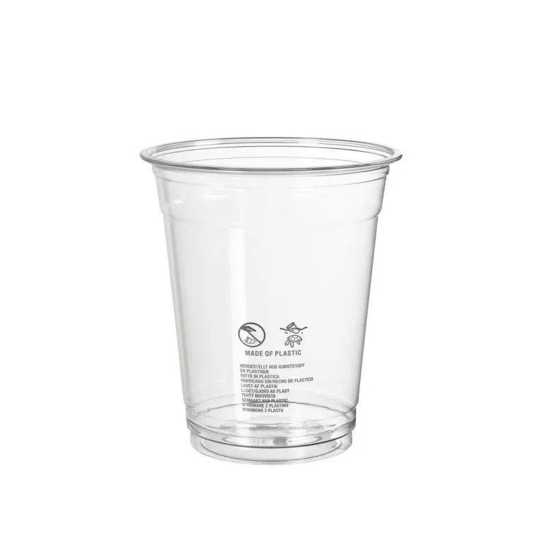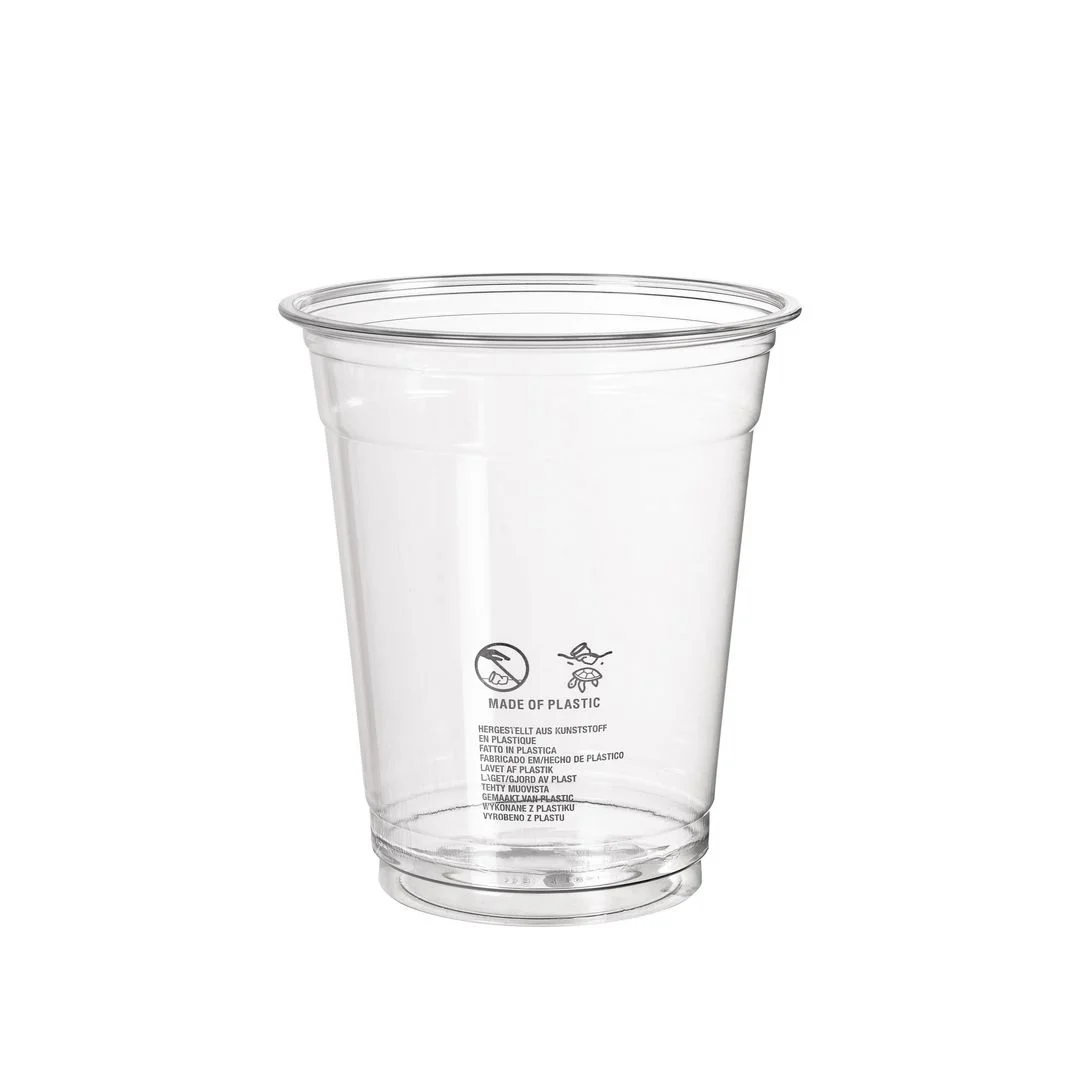 Krystallklare plastglass til snacks, smoothie, juice og annen drikke. Crystal plastglass, fremstilt av 100% gjenvunnet PET (RPET).