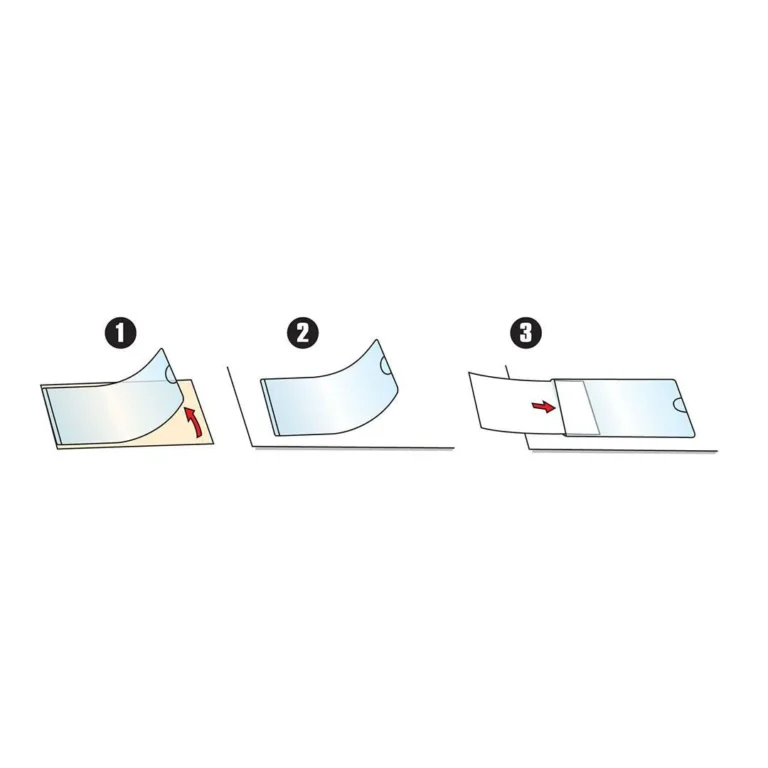 Kan monteres enten vertikalt eller horisontalt. Har fingerhull for rask fjerning av kort. Klar antistatisk polypropylenkappe med selvklebende bakside og fingerhakk.