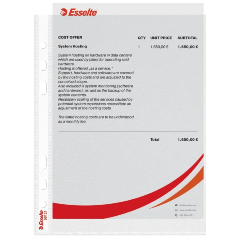 Praktiske A5-lommer for sikker dokumentoppbevaring. Esselte A5 plastlommer med 6-hulls forsterket kant gir enkel arkivering og trygg oppbevaring av dokumenter. Perfekt for daglig bruk.