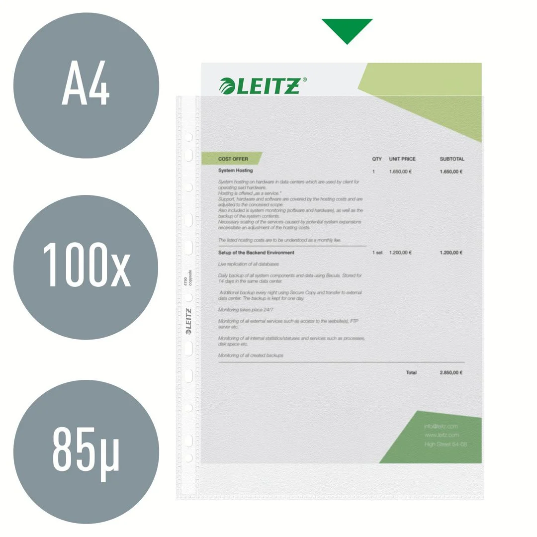 Plastlomme LEITZ A4 topp 85my (100)