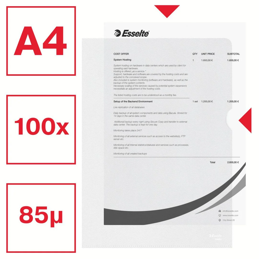 Disse gjennomsiktige mappene fra Esselte® passer perfekt for praktisk oppbevaring av dokumenter, som rapporter og presentasjonsmateriale. Sørg for ekstra beskyttelse av viktige dokumenter med disse gjennomsiktige mappene fra Esselte®.