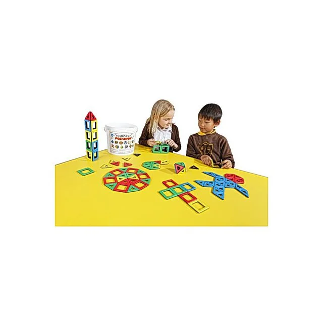 Et morsomt og underholdende spill for barna som lar dem utforske en verden av magnetisme mens de leker med former og farger. En flott måte for barna å utforske en verden av fasonger og magnetisme på – dette polydronsettet er laget av ABS-plast og leveres i sett på 96 deler i assorterte farger og ulike størrelser.