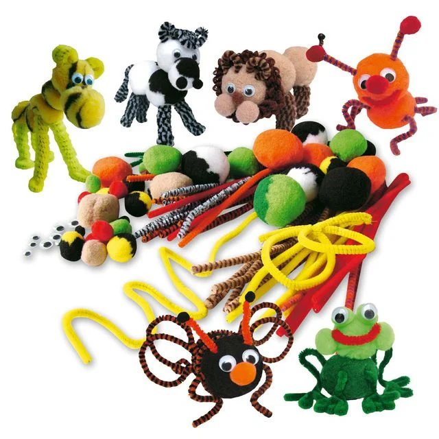 • Inneholder pom-pom baller, piperensere og øyne for 24 dyr. Beskrivelse medfølger. Lim inngår ikke.
