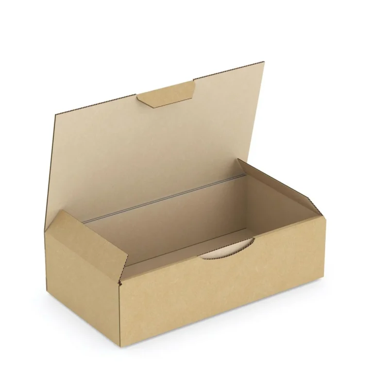 Esken har en enkel klaff i lokket for lukking, samt ekstra sideklaffer som kan brettes inn og sørger for at innholdet holder seg på plass. En ekstra nedbrett på langsiden gir et godt hold i esken.