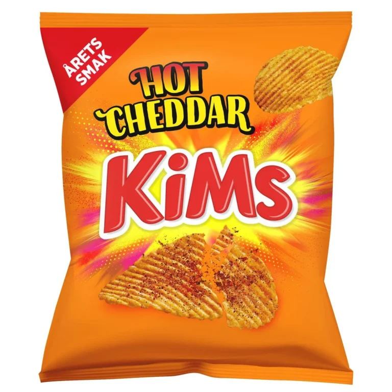 KiMs Hot Cheddar er ekstra sprø potetchips med masse smak av sterk cheddarost. Kims Hot Cheddar er et krydret og riflet potetgull. Et perfekt følge til godt drikke.