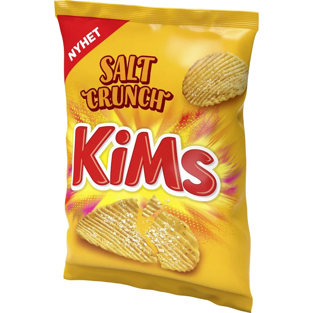 KiMs Salt Crunch er et ekstra sprøtt og smaksrikt potetgull, saltet og riflet. Produsert på chipsfabrikken på Skreia, av nøye utvalgte poteter.