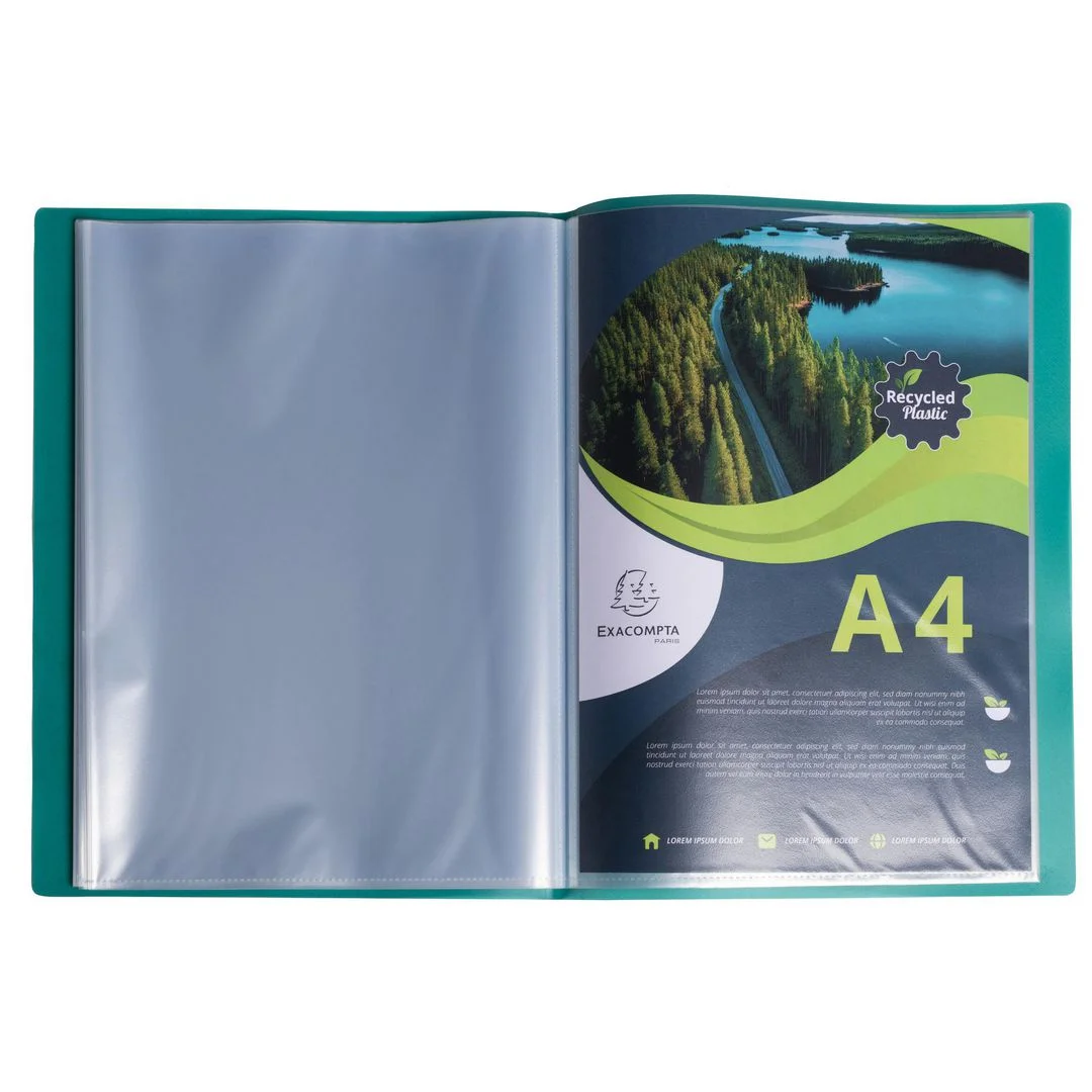 - Exacompta OpaK visningsmapper er laget av resirkulert polypropylen med en tykkelse på 4/10E, og er designet for å gi utmerket beskyttelse og presentasjon av dokumenter. Mappen har en størrelse på 24x32cm og passer A4-dokumenter. Med 40 kornrike lommer gir denne mappen 80 visninger, perfekt for dokumentpresentasjon.