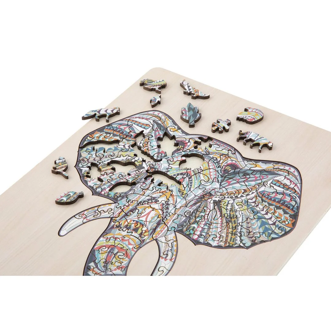 Puslespill GRAPHIX Elefant i tre Dette trepuslespillet har unike former på hver brikke og når du er ferdig sitter du igjen med et nydelig motiv. Kan settes på hylla eller kommoden, eller så kan ta det fra hverandre og legge det på nytt.