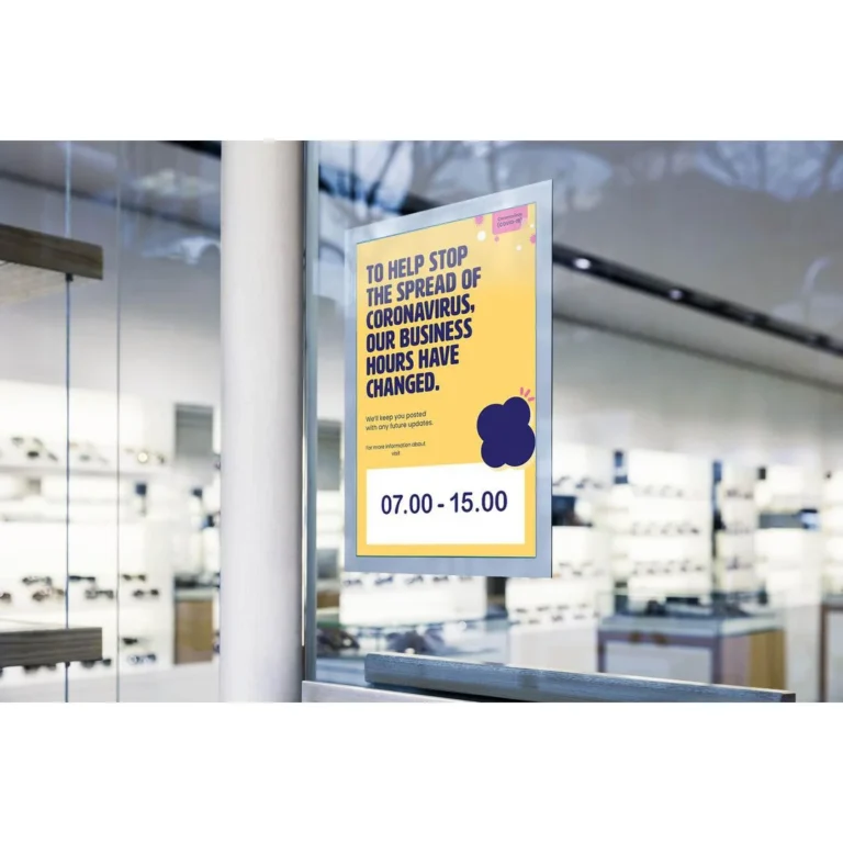 Selvklebende posterramme med magnetisk forside for bruk på glass og