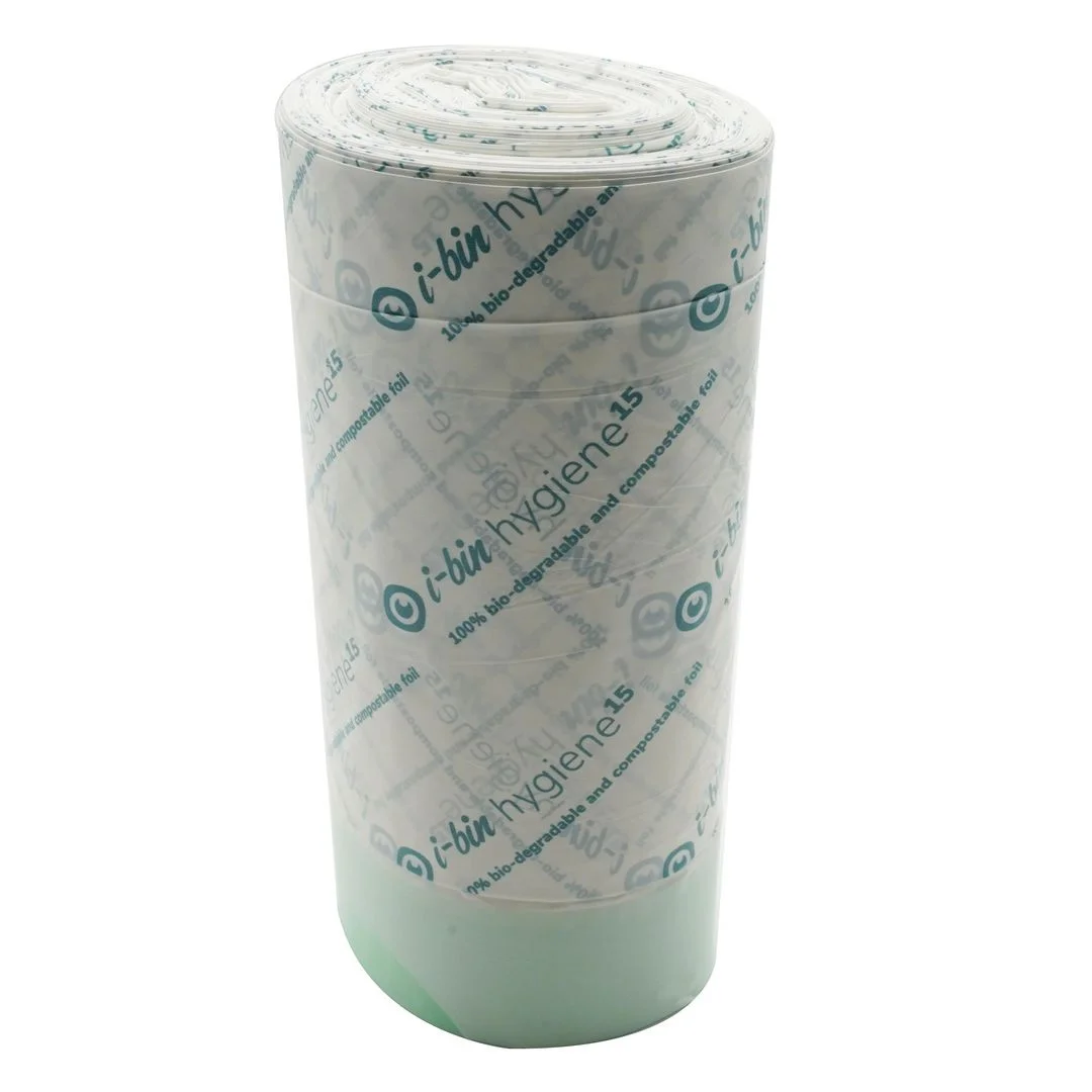 • Poserull (12 stk per rull) som brukes som innepose i hygienebeholder i-bin. Posen samler avfall som er forseglet i en folie av naturlig opprinnelse slik at operatøren enkelt kan rengjøre kurven og kaste poser i restavfall.