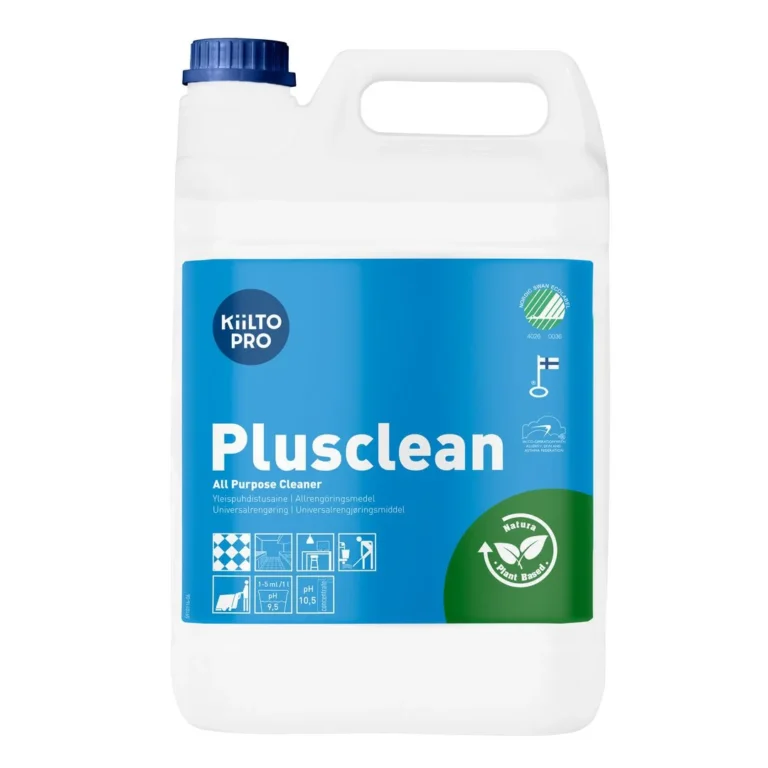 Produktet fjerner smuss og fett effektivt og kan brukes både manuelt og maskinelt. Universalmiddel Svanemerket Allergimerke tildelt av den finske allergi-, hud- og astmaforeningen Produsert i Finland Kiilto Pro Natura-merket: laget av plantebaserte råvarer som er 100 % nedbrytbare 1 l flasken er 100 % resirkulert rHDPE og 5 l kannen er 35 % resirkulert rHDPE Parfymefri.