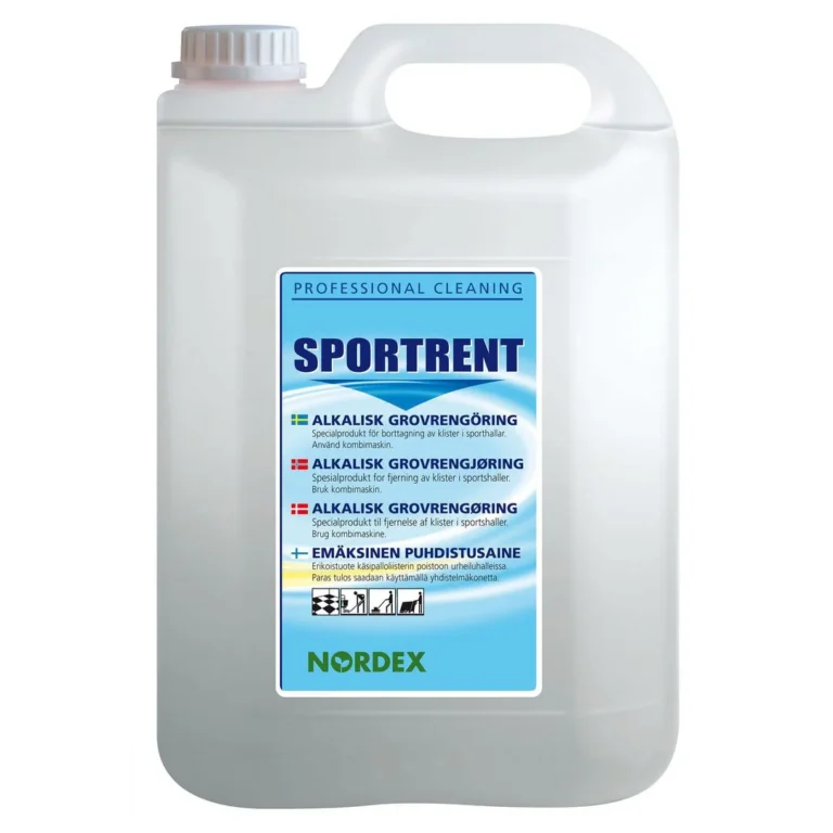 Nordex Sportrent er et grovrengjøringsprodukt for sportsgulv. Spesialprodukt for gulv i idrettshaller. Effektiv på oljeaktig smuss og sot. Spesielt egnet for fjerning av håndballklister i idrettshaller.