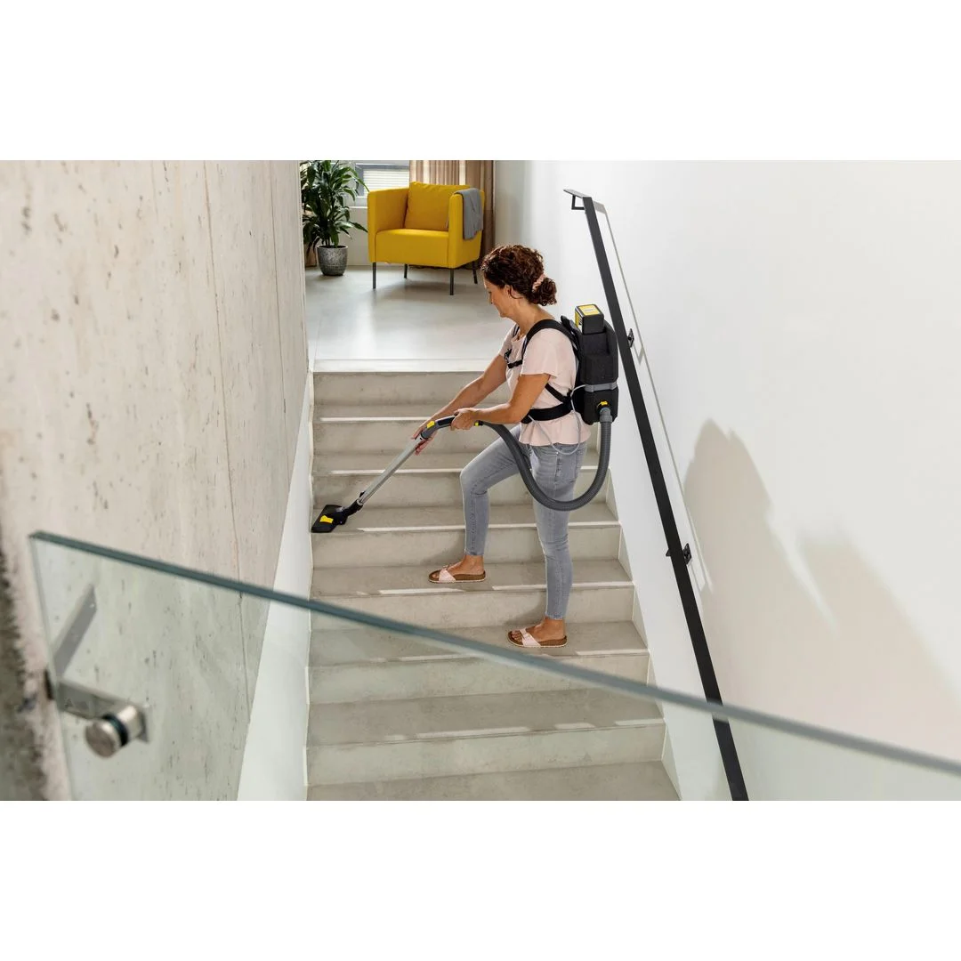 Ultralett, kraftig og batteridrevet: BVL 3/1 Bp ryggstøvsugeren er en banebrytende enhet som veier kun 4,5 kg når den bæres på ryggen. Dette oppnås takket være det nyskapende EPP-materialet, som gir ryggstøvsugeren BVL 3/1 Bp en imponerende robusthet og slitestyrke til tross for sin lette vekt. Enten det er for skolevaktmestere, håndverkere eller for hjemmebruk, blir punktrengjøring og rengjøring av trapper en lek med denne kraftige ryggstøvsugeren som har et 3-liters beholderkapasitet, perfekt for trange områder. Med et praktisk kontrollpanel på hoftebeltet for styring av alle viktige funksjoner blir BVL 3/1 Bp ekstremt brukervennlig og enkel å betjene. I tillegg til standardtilbehøret, kan du velge ekstrafunksjoner som det valgfrie HEPA-14-filteret.
