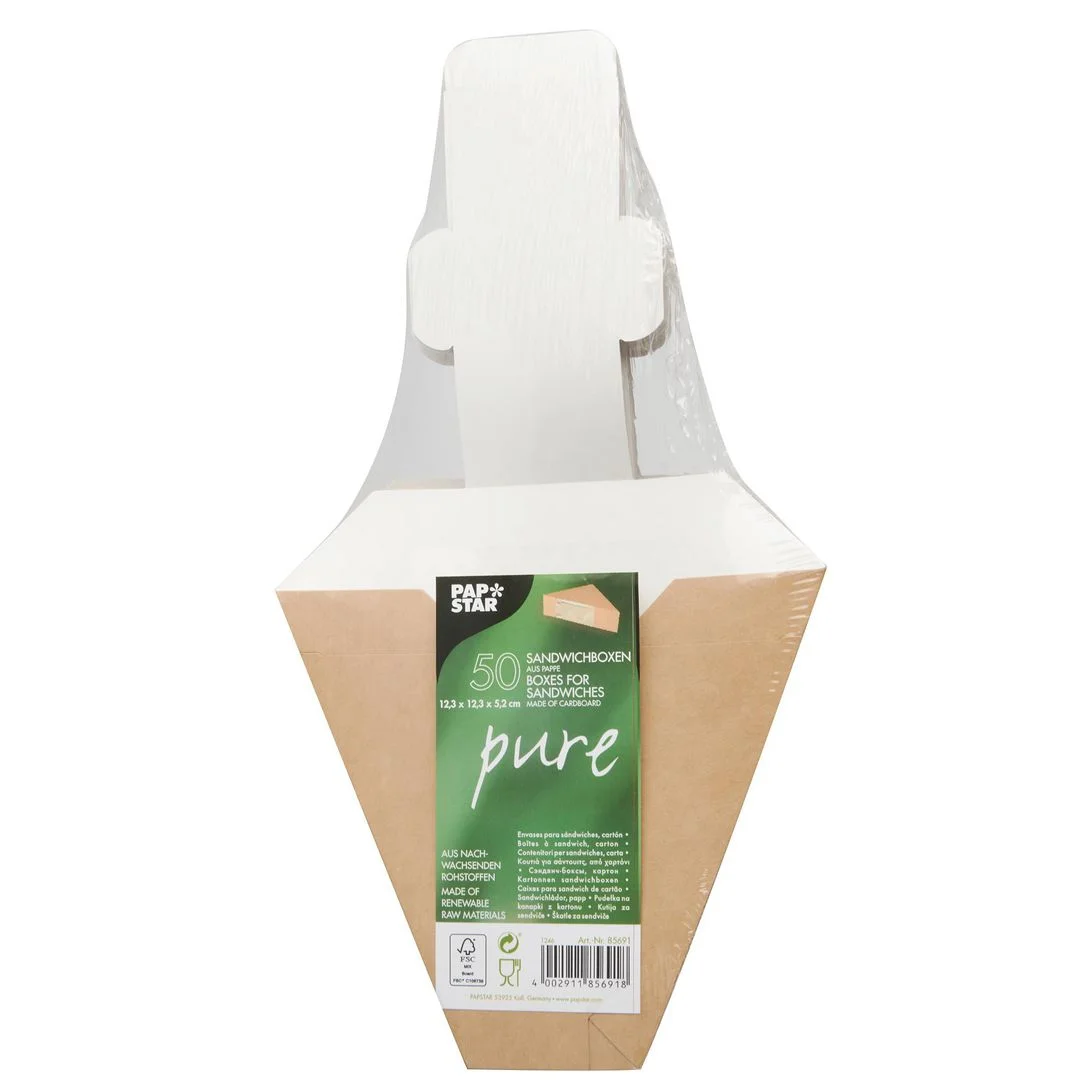 Sandwichbokser i papp med vindu. Praktisk smørbrødboks for 2 brødskiver.