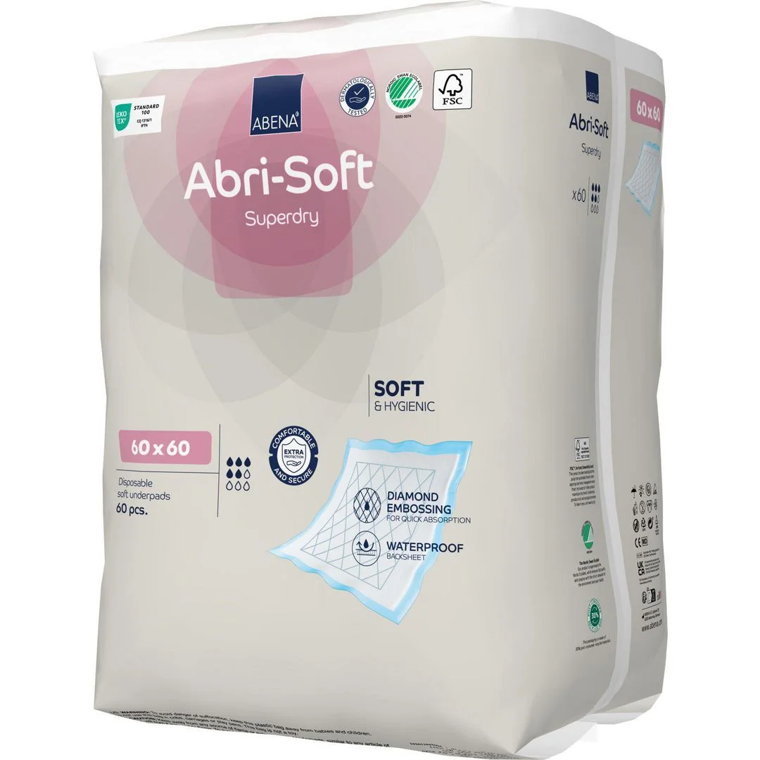 ABENA Abri-Soft Superdry er en beskyttende engangsunderlag for senger og stoler som hjelper brukeren med å føle seg trygg og komfortabel i enhver situasjon. Underlaget er hovedsakelig beregnet for ikke-sterile prosedyrer som sårbehandling eller blodprøvetaking. Det er også svært godt egnet som beskyttelseslaken i forbindelse med inkontinensproblemer.