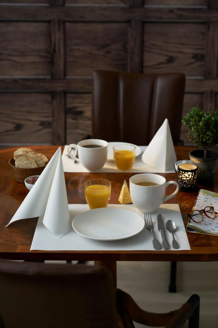Dunilin-et unikt materiale med en tekstilpreget overflate som gjør at servietten ser ut og kjennes som tekstil.