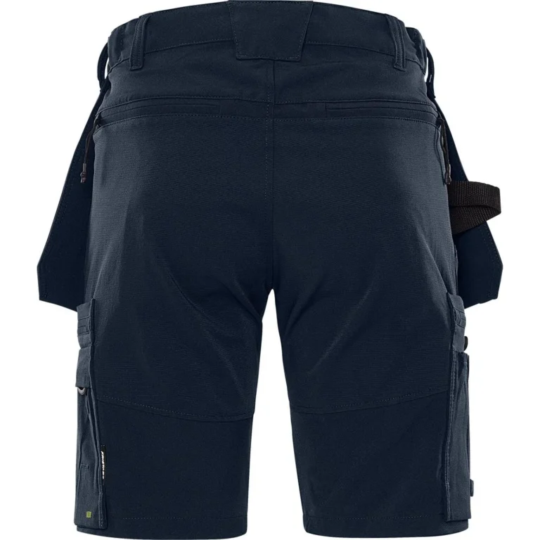 Shortsen har alle lommer du trenger i en travel arbeidsdag – blant annet løsthengende verktøylommer, tommestokklomme, benlomme med glidelås og praktiske detaljer som verktøyhemper og knivfeste.