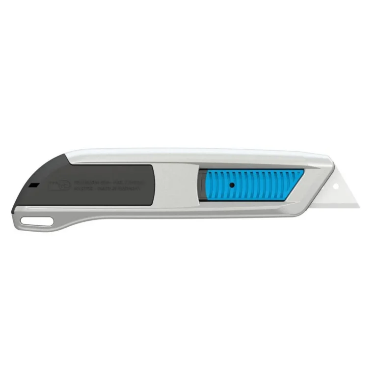 Solid aluminiumshåndtak tåler tøff bruk i industri, lager og logistikk. Ergonomisk utforming gir høy komfort, selv ved langvarig arbeid. Perfekt til kartong, folie, plaststrips og andre emballasjematerialer. Raskt bladbytte uten verktøy gir minimal nedetid og økt produktivitet.