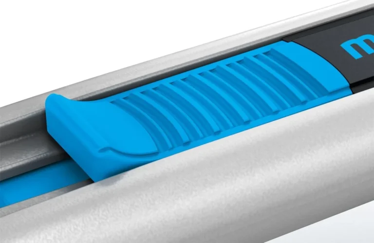 Den store, riflete skyveknappen gir et sikkert grep, også med hansker, og gjør kniven enkel og trygg å betjene
