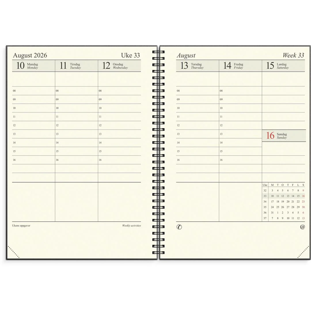 GRIEG Sjefskalender i A4 gir deg den plassen og oversikten du trenger for å styre en travel uke – elegant og effektivt