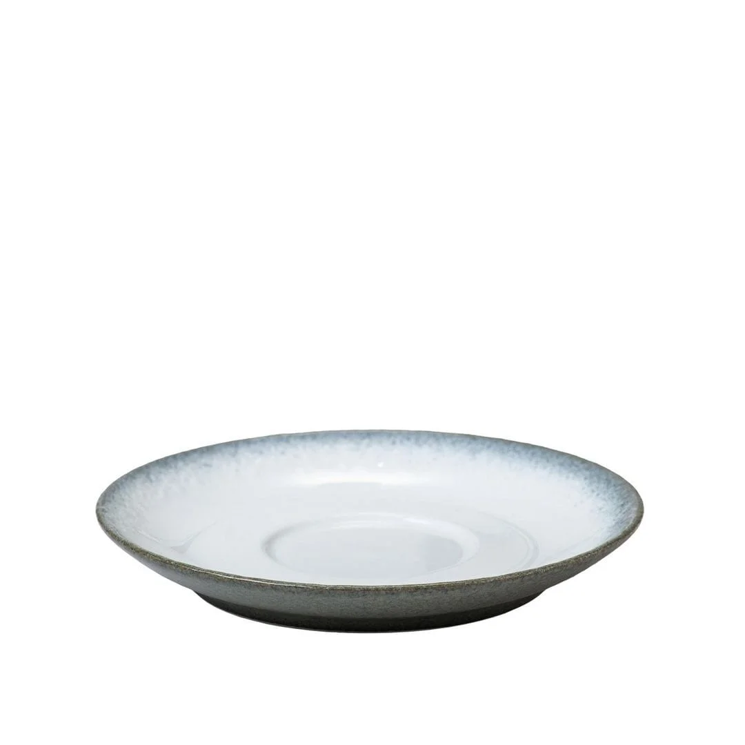 Skål til kopp i serien Bright, et visuelt tiltalende servise i glasert porselen. Glasuren som er benyttet på porselenet er reaktiv. Det gjør at hvert enkelt produkt utvikler seg unikt og fargeforskjeller vil forekomme fra brenning til brenning. Reaktiv glasur brukes for å dyrke det unike, og gjør serviset mer spennende. Koppen kan vaskes i oppvaskmaskin. Pass på at produktene ikke kommer borti hverandre i oppvaskmaskinen, dette kan forringe, skape mekanisk slitasje og skade porselenet. Porselenet tåler temperaturer mellom -40°C og 250°C, og kan benyttes i ovn, mikrobølgeovn og fryser. Unngå hurtige temperaturforskjeller som å sette porselen rett fra fryser og inn i ovn. Kopp selges separat. – Øvre diameter: 140mm – Temperaturområde: -40°C til +250°C – Farge: Hvit/Grønn