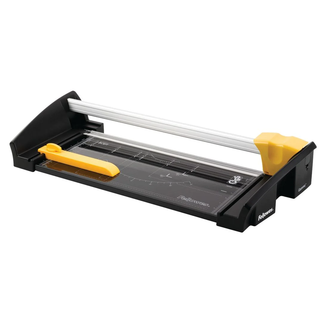 Heavy-duty papirkutter for kontormiljøer Fellowes Gamma A3 er utviklet for tunge kutteoppgaver og leverer nøyaktige resultater hver gang. Med en kapslet SafeCut™ rustfri stålblad kan den skjære opptil 20 ark samtidig på en robust metallbase.
