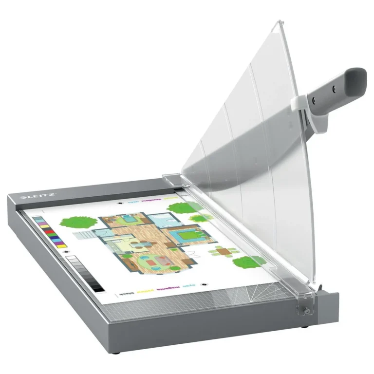 Leitz Precision Office Pro A3 skjæremaskin er perfekt for generelt kontorbruk for å skjære gjennom papir, etiketter, film, bilder, laminater, kartong og monteringskartong. Denne kraftige og robuste skjæremaskinen vil enkelt beskjære opptil 25 ark A4-papir (80 g) med hastighet og presisjon. Har unik EdgeGlow-lysteknologi som belyser forkant for større sikt og maksimal presisjon.