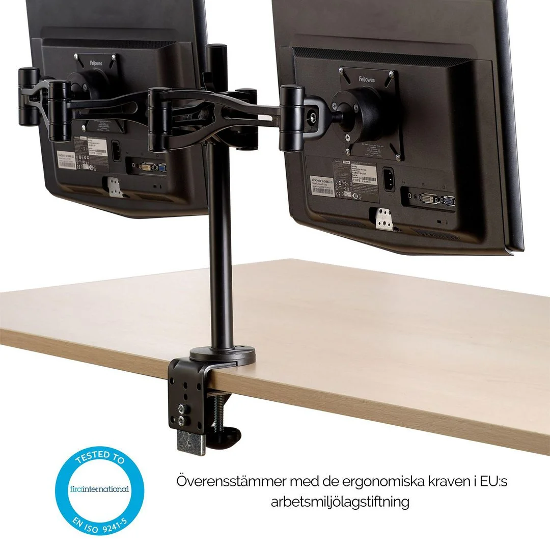 Skjermarm, Fellowes® 2 justerbare skjermarmer som kan vinkles for optimal betraktningsvinkel.