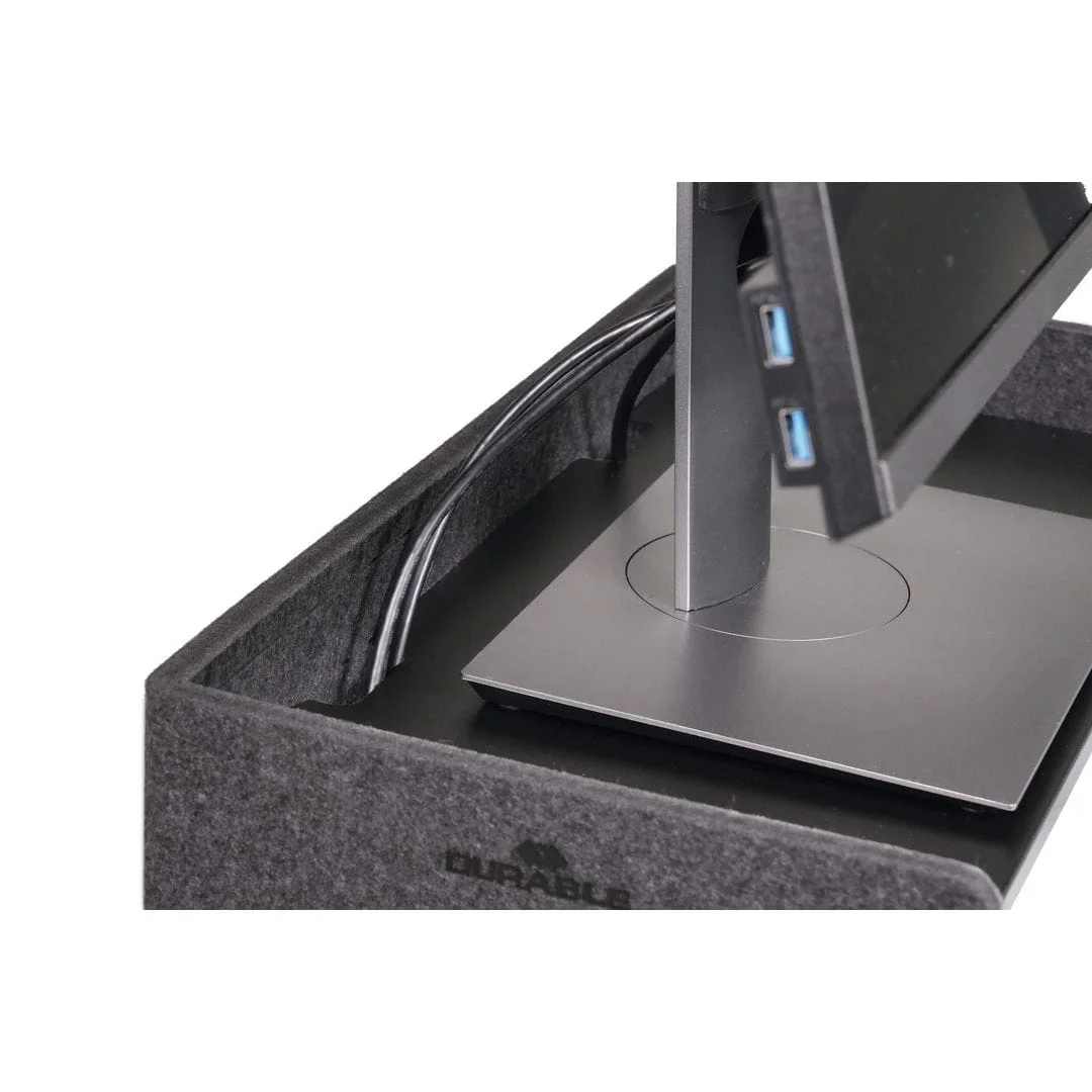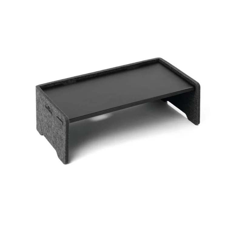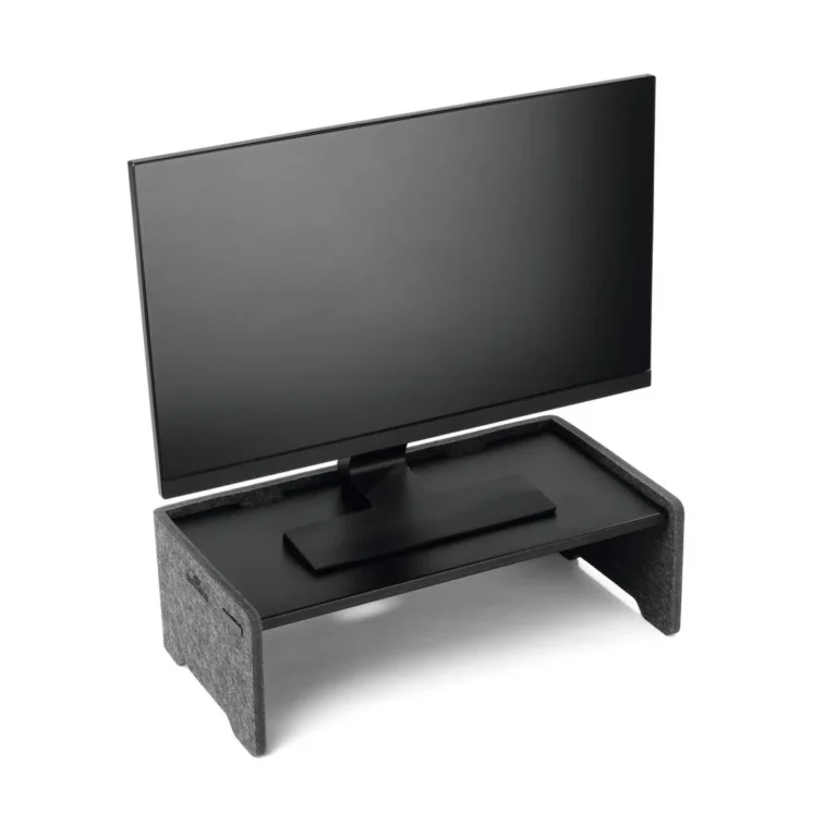 Den lydabsorberende filtoverflaten gir et moderne uttrykk, og den solide metallhyllen kan enkelt justeres i tre høyder (9, 12 og 15 cm) uten skruer eller lim. Med en maksimal belastning på 10 kg og en praktisk åpning for ladekabler, er dette stativet den perfekte kombinasjonen av ergonomi, organisering og bærekraft. Ergonomisk skjermhøyde som reduserer belastning på nakke og øyne Plassbesparende design med oppbevaringsskuff Belastnings kapasitet: Maks. 10kg Justerbar høyde: 9, 12, 15cm.