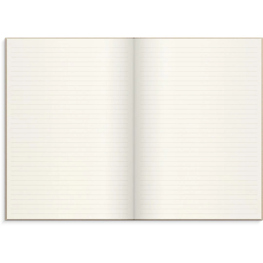 Innmaten er av høyeste kvalitet med kremfarget, syrefritt og aldersbestandig papir. Layout: Linjert Omslag: Lintekstil. Innbundet.