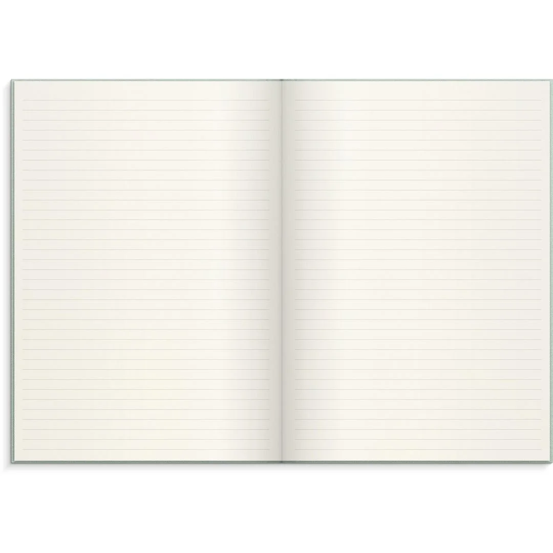 Innmaten er av høyeste kvalitet med kremfarget, syrefritt og aldersbestandig papir. Layout: Linjert Omslag: Lintekstil. Innbundet.