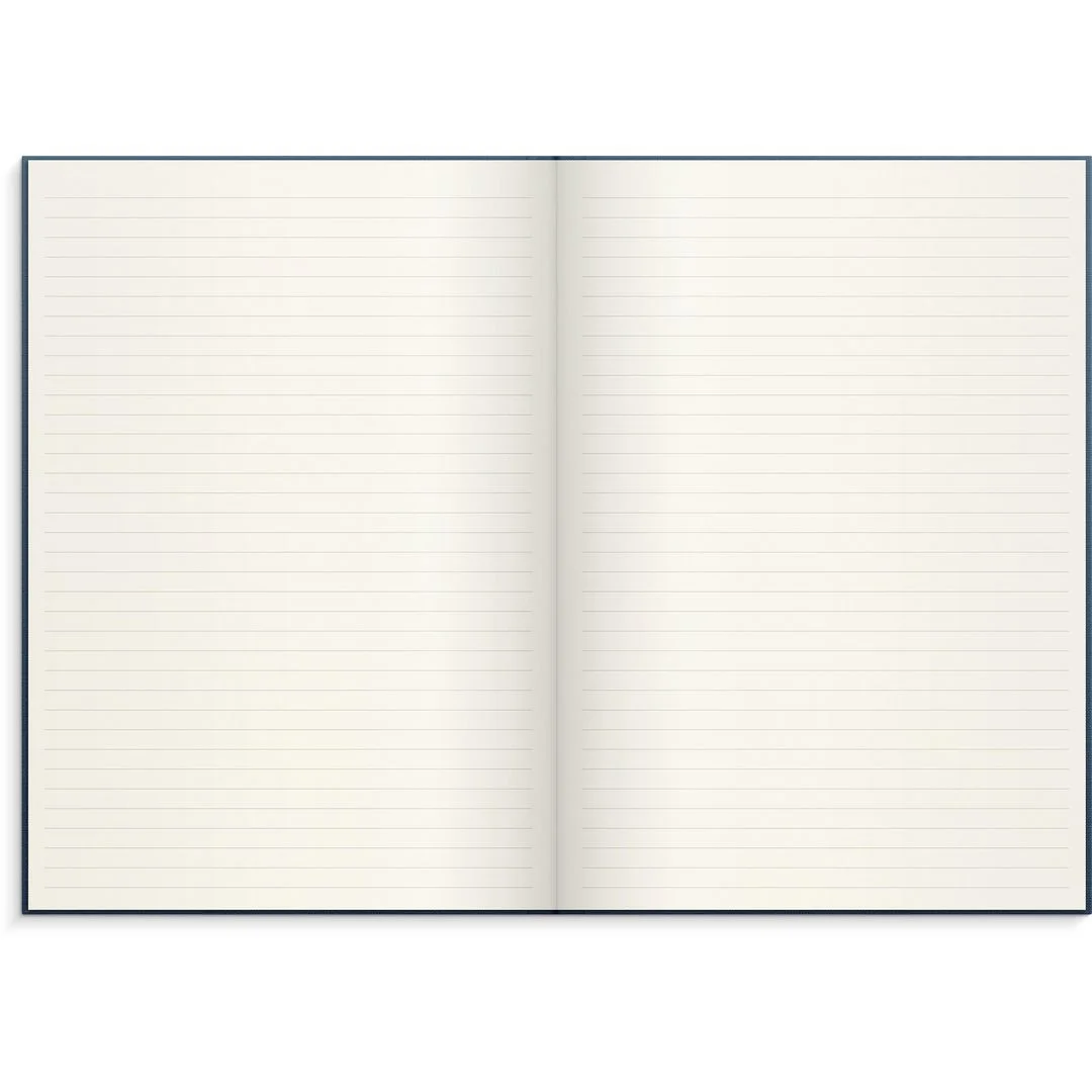 Innmaten er av høyeste kvalitet med kremfarget, syrefritt og aldersbestandig papir. Layout: Linjert Omslag: Lintekstil. Innbundet.