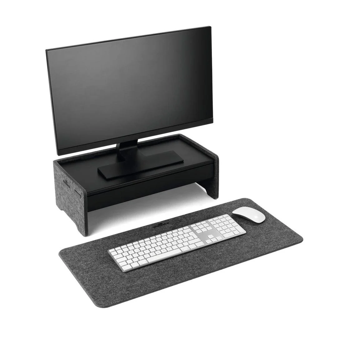 En innebygd mobiltelefonholder kan enkelt skyves ut ved behov og felles tilbake for en jevn overflate. Underlaget kan også brettes i to , slik at det enkelt kan tas med til en annen arbeidsplass. Behagelig skriveunderlag, perfekt for hjemmekontor og arbeidsplassen Lydabsorberende og slitesterkt filtmateriale for bedre komfort Innebygd mobilholder – praktisk og plassbesparende.