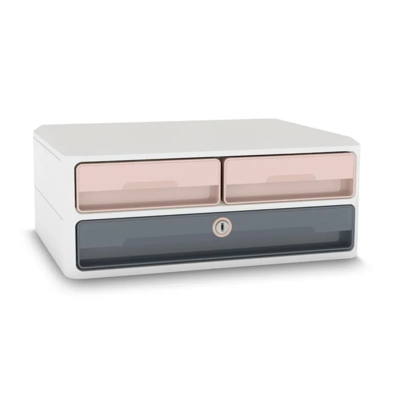 Det er mulig å indeksere og personliggjøre skuffene med en vannbasert tusj. Laget av resistent, 100% resirkulerbar PS-plast. Agil modul for moderne arbeidsmetoder Låsbare skuffer for sikkerhet Kan brukes som monitorstativ for bedre holdning Indeksering og personalisering mulig.