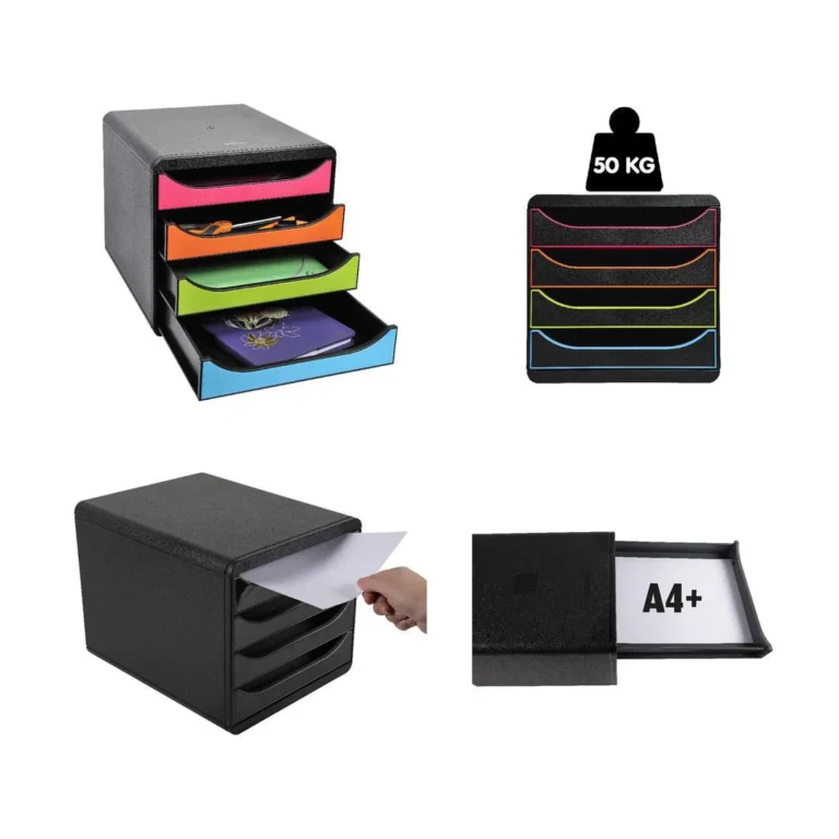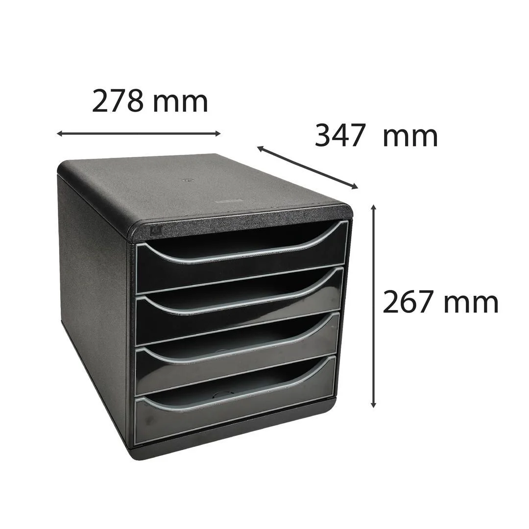 Exacompta BIG-BOX Glossy White Forever Young skuffekabinett. Skuffekabinett med 4 skuffer på 55 mm for oppbevaring av A4+ dokumenter. Glatt skuffehandling med stopp. Monocoque hus som tillater høy belastning.