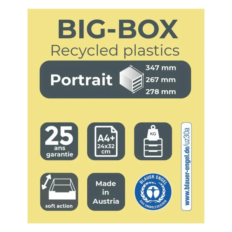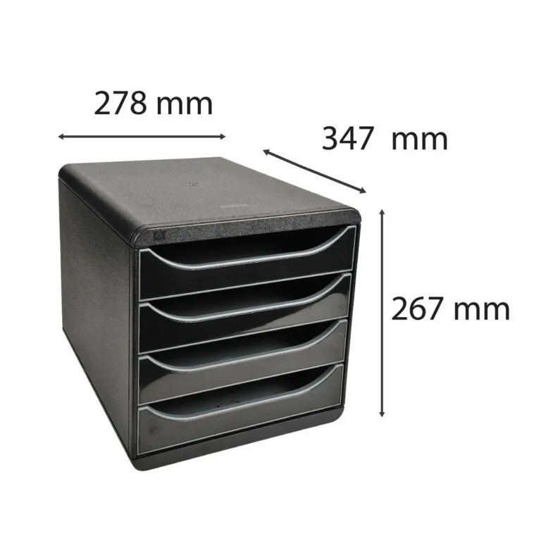 Størrelsen passer perfekt på skrivebordet. 4 skuffer, hver 55 mm. Glatt skuffehandling med stopp. Monocoque hus for høy belastning.