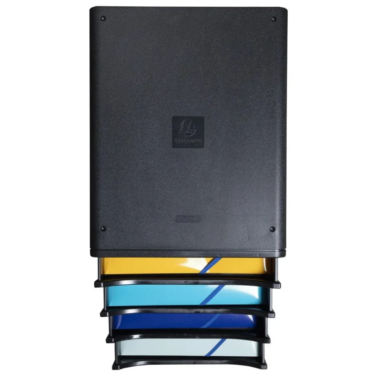Designet i en enkelt blokk, og er derfor mer motstandsdyktig, ultra-stiv og holdbar. Et sett med 4 skuffer for oppbevaring av A4- og A4+-dokumenter og kan stables oppå med 4 innhakk som sikrer stabiliteten til boksene. Sertifisert av Blue Angel.