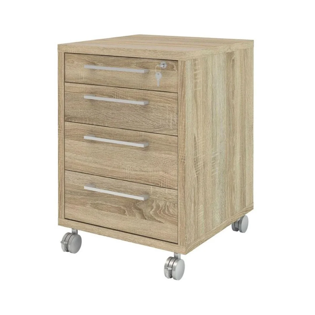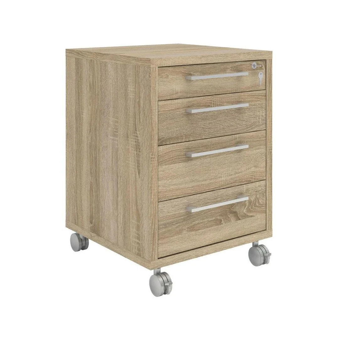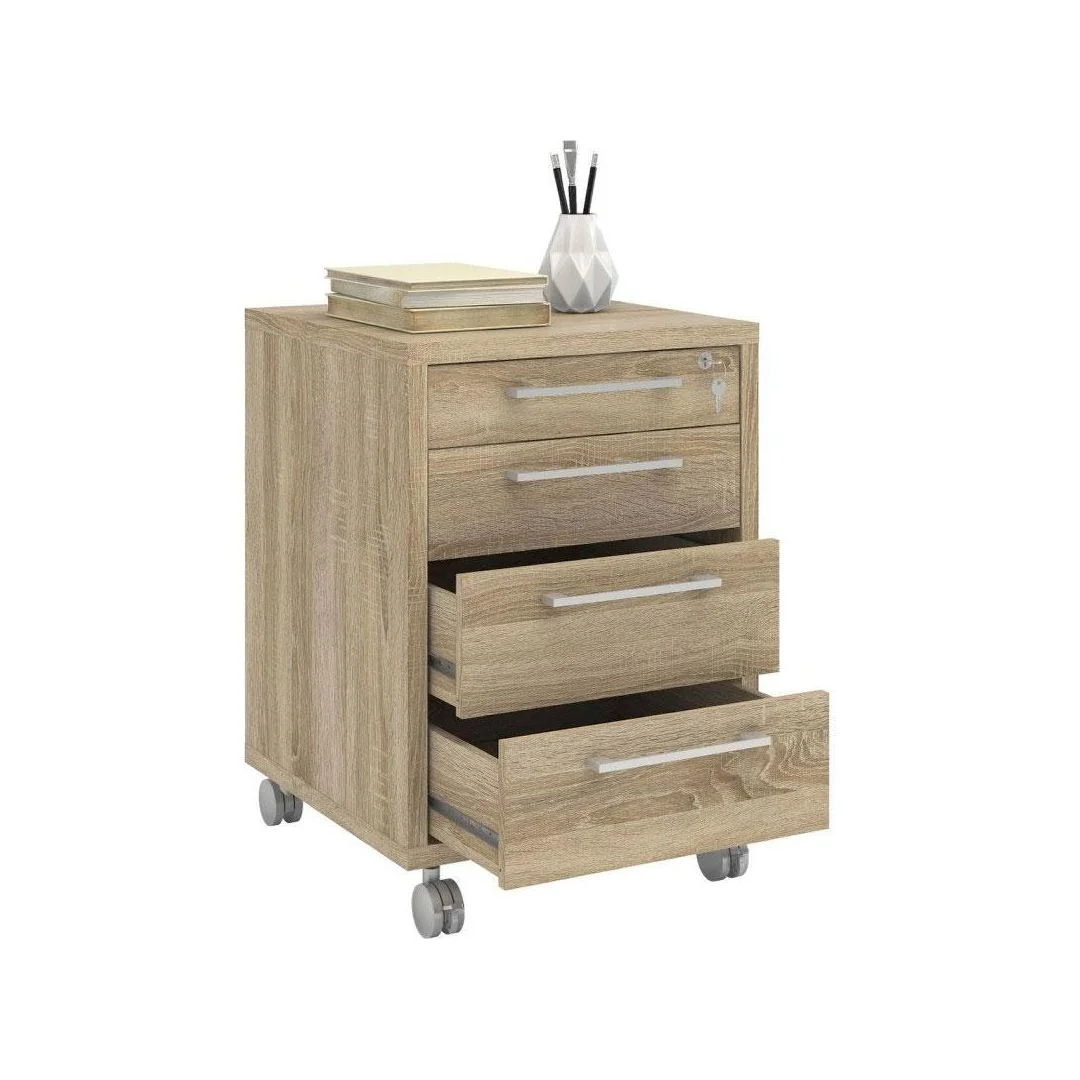 Skuffeseksjon på hjul med stopp. 3 skuffer 1 arkivskuff Lås i øverste skuff leveres flatpakket.