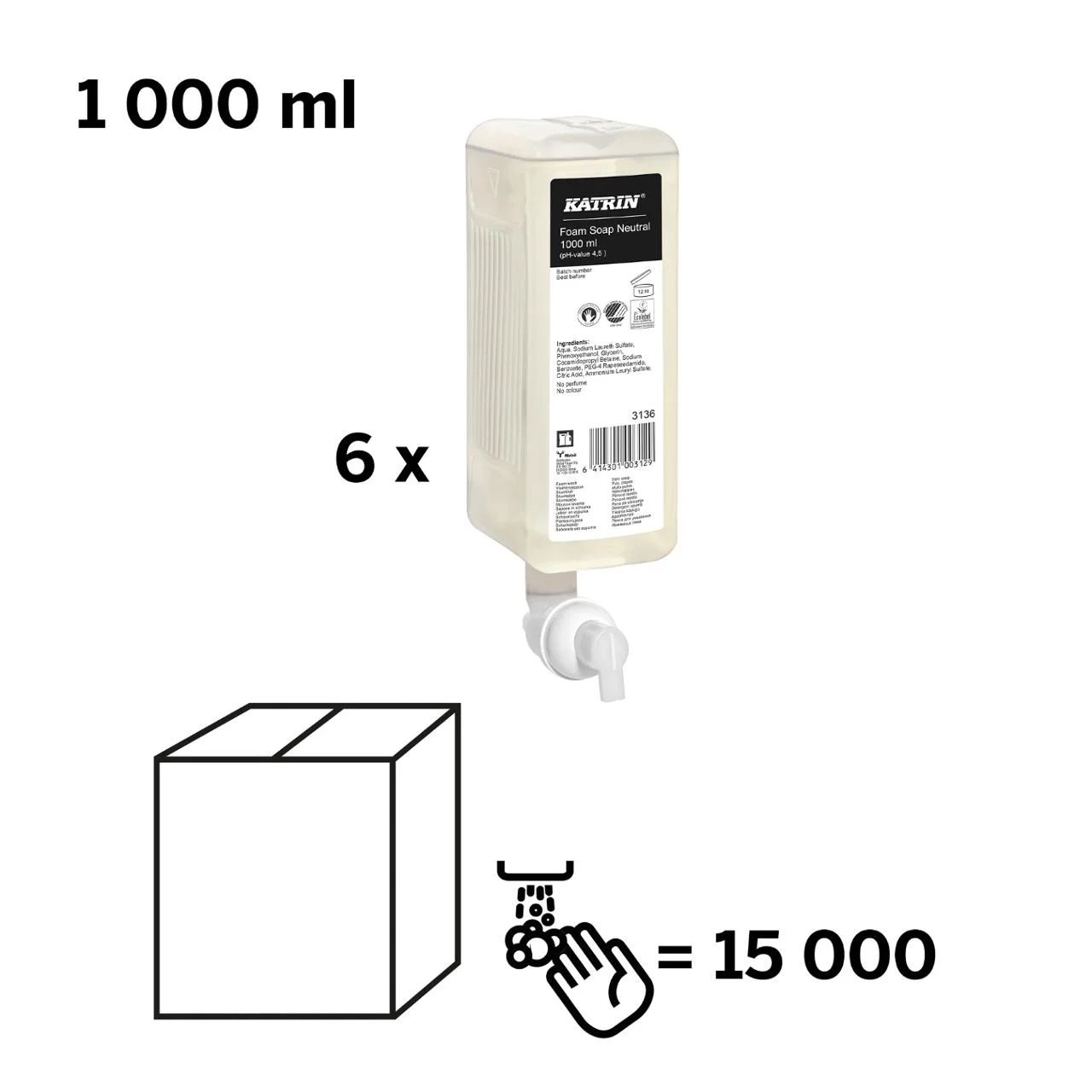 Gir et mykt, behagelig skum. Inneholder milde ingredienser for sensitiv hud, noe som gjør såpen spesielt nyttig for hyppig bruk. Dermatologisk testet og godkjent. Passer til Katrins såpedispenser 1000ml. Gir rikelig med skum Egnet for sensitiv og normal hud 2500 doseringer per patron.